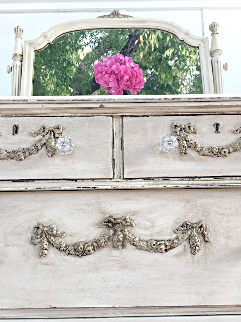 DeleteThis is such a lovely piece! You did an amazing job fixing the appliques. And the dark wax really brings the personality out in this dresser.